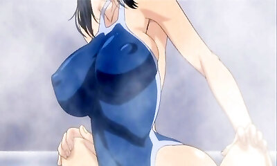 Big titted hentai babe in swimsuit gets fucked in the douche