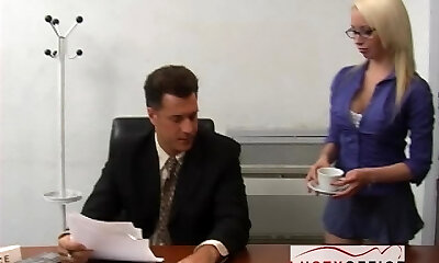 Awesome blond haired beauty with sexy boobies sucks jummy dick