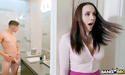 Stepmom With Huge Tits Seduces Stepson With Her Beautiful Curvy Milf Giant Body While Riding Cock