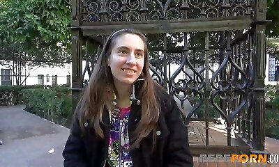 Busty Czech unexperienced fucks outdoor in public