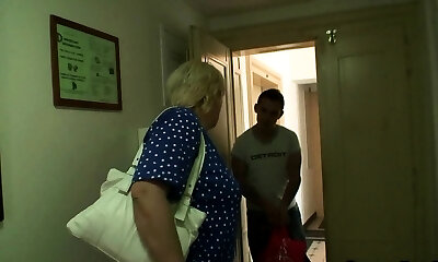 Dude seduces old huge-boobed blonde for cock-riding