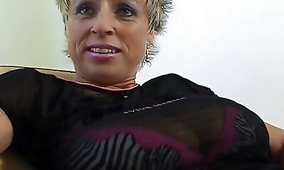 Old German chick with huge natural tits playing with her hookup fucktoy