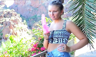 Sexy Honey Toys Her Pussy Outside And Reaches One Orgasm After Another