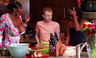 Milky guy has FUN playing with those BIG BLACK BOOBS
