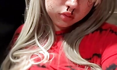 Hot emo girl with great tits masturbates my wood with a pocket pussy