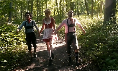 Outdoor Threesome in the Woods with Anal Fuck-a-thon for a Blonde Slut