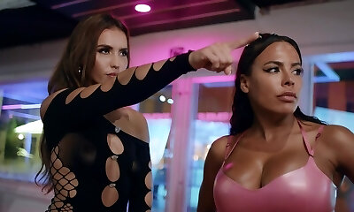 Fitness Rooms – Ebony and Romanian interracial threesome
